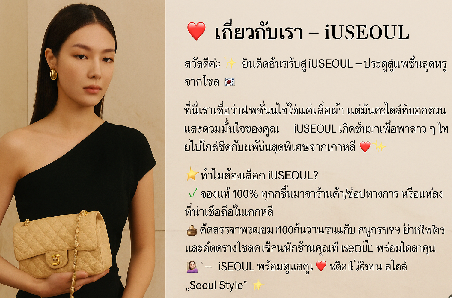 สวัสดีค่ะ ✨ ยินดีต้อนรับสู่ iUSEOUL – ประตูสู่แฟชั่นสุดหรูจากโซล 🏙️👜